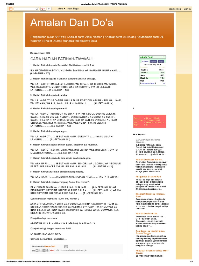 Tawassul Fatihah Lengkap : Bertawassul Dengan Surah Al Fatihah Vitamin Wawa Pengedar Shaklee Aktif - بِسْمِ اللهِ الرَّ حْمَنِ الرَّ حِيْمَ.. Baca surat al fatihah lengkap bacaan arab, latin & terjemah indonesia. Al fatihah…tsuma ila ruhi sayidina al muhajir ilallah al imam ahmad bin isa wa sayidina al fakih al muqoddam al imam muhammad bin ali ba alawi wa ushulihim wa furu'ihim wa dzawil huruki alaihima. Ila hadroti nabiyyil musthofa mukhammadin sholallohu alaihi wassalam wadzuriyatihi wa ahli. Surah ini diturunkan dimekkah yang terdiri dari 7 ayat dan surah pertama yang dibaca seseorang dalam setiap rakaat shalat. Surah ini terdiri dari 7 ayat dan tergolong surah makkiyah karena diturunkan di kota.